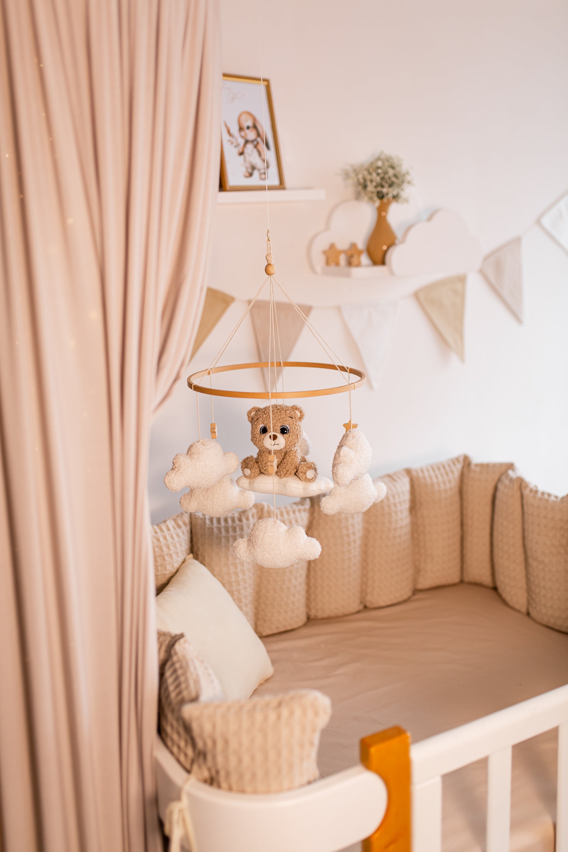 Cute Bear baby mobile boucle stars clouds nursery decor