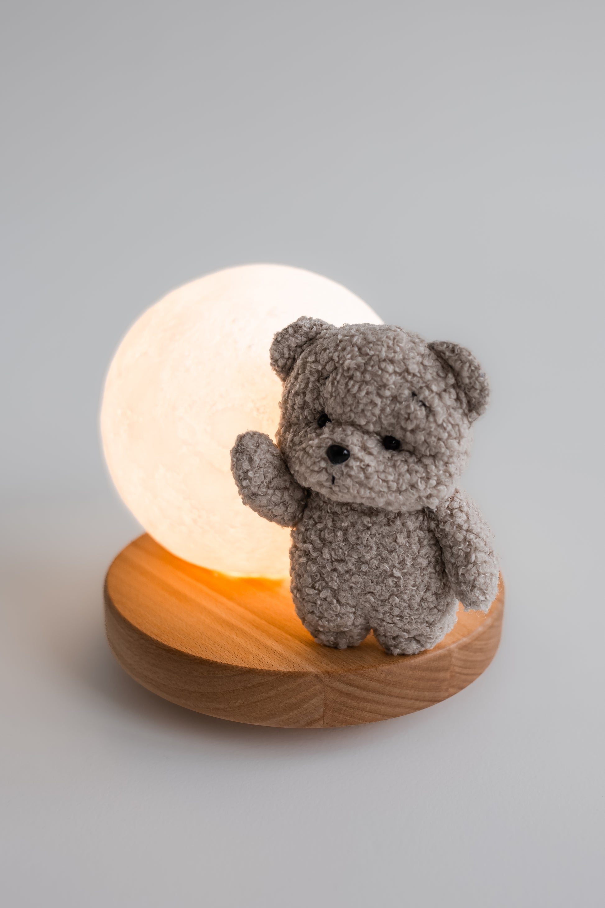 This handmade nursery lamp with a teddy bear or bunny creates a calm, warm atmosphere in the baby’s room and becomes a gentle companion at bedtime.